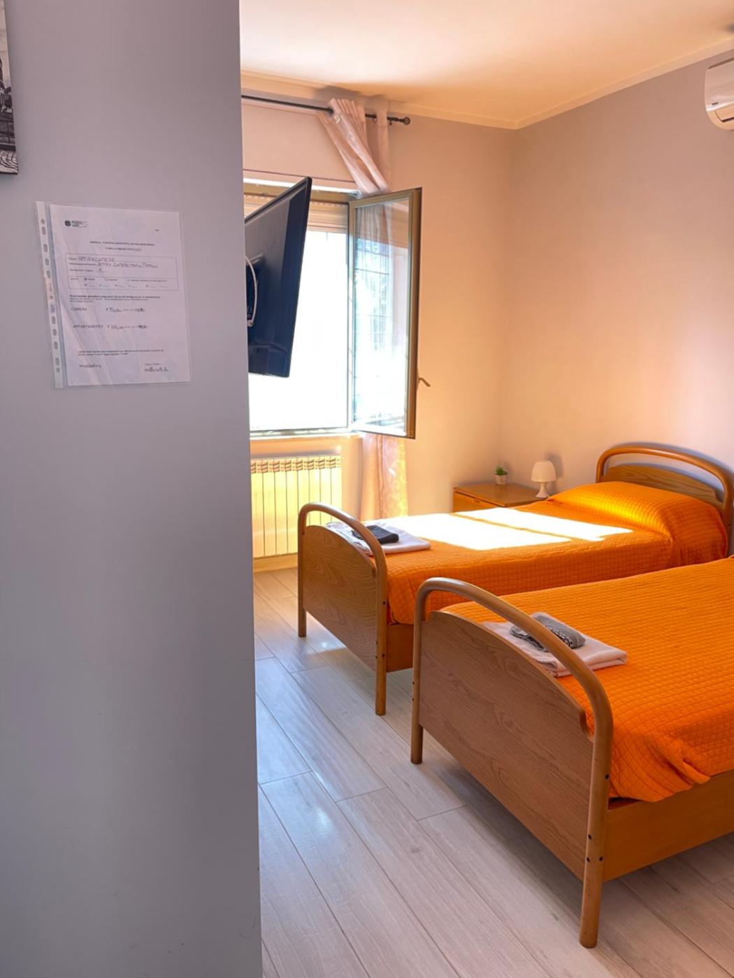 Camera Doppia con Letti Singoli. Camera doppia con letti singoli dotata di aria condizionata, armadio e bagno privato con doccia e asciugacapelli. LunitĂ dispone di 2 letti. ;