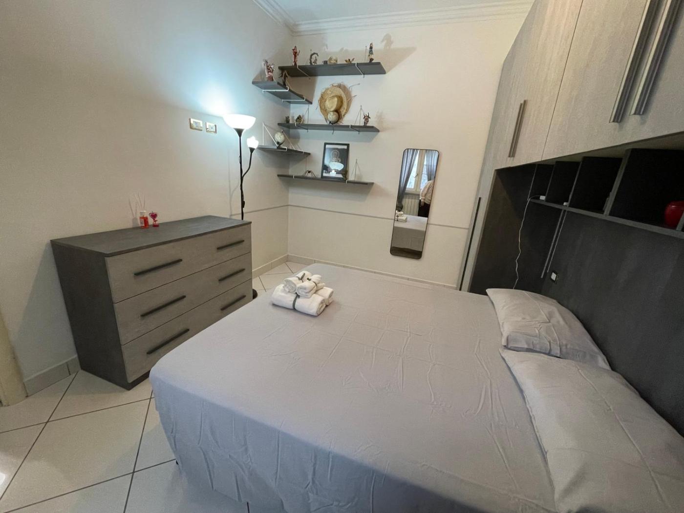 Questa casa vacanze con 1 camera da letto e aria condizionata presenta 1 bagno con bidet, doccia edi cortesia. La cucina ha frigorifero, forno e piano cottura, più macchina da caffè e bollitore elettrico.