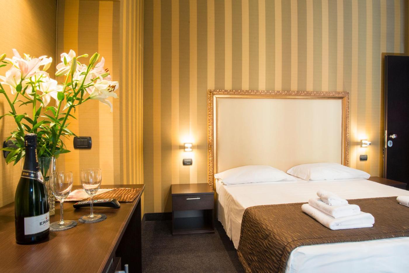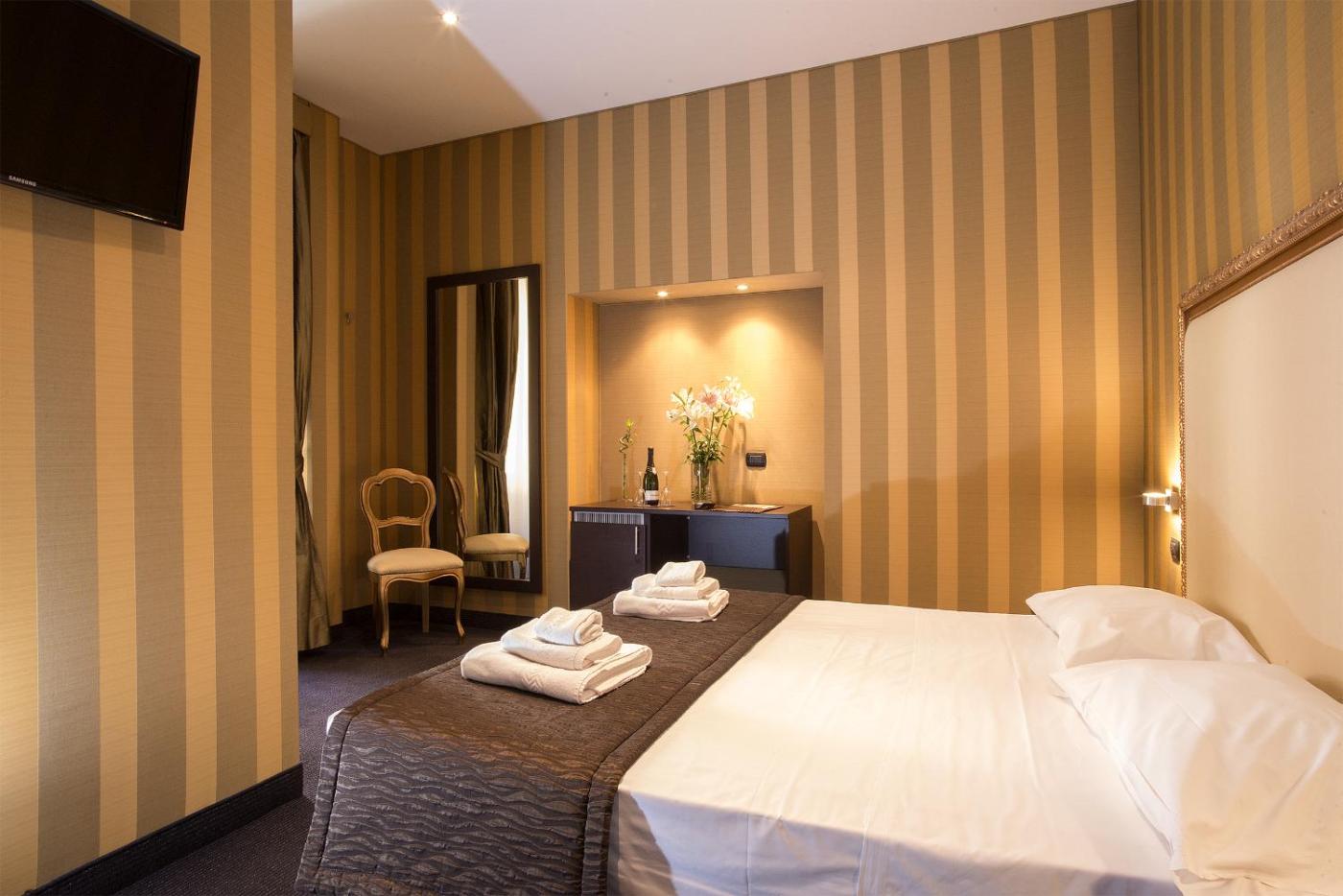 Camera Deluxe MatrimonialeDoppia con Letti Singoli. Providing free toiletries, this twindouble room includes a private bathroom with a shower and a hairdryer. The air-conditioned twindouble room provides a flat-screen TV, soundproof walls, a minibar, a tea and coffee maker as well as a quiet street view. ;