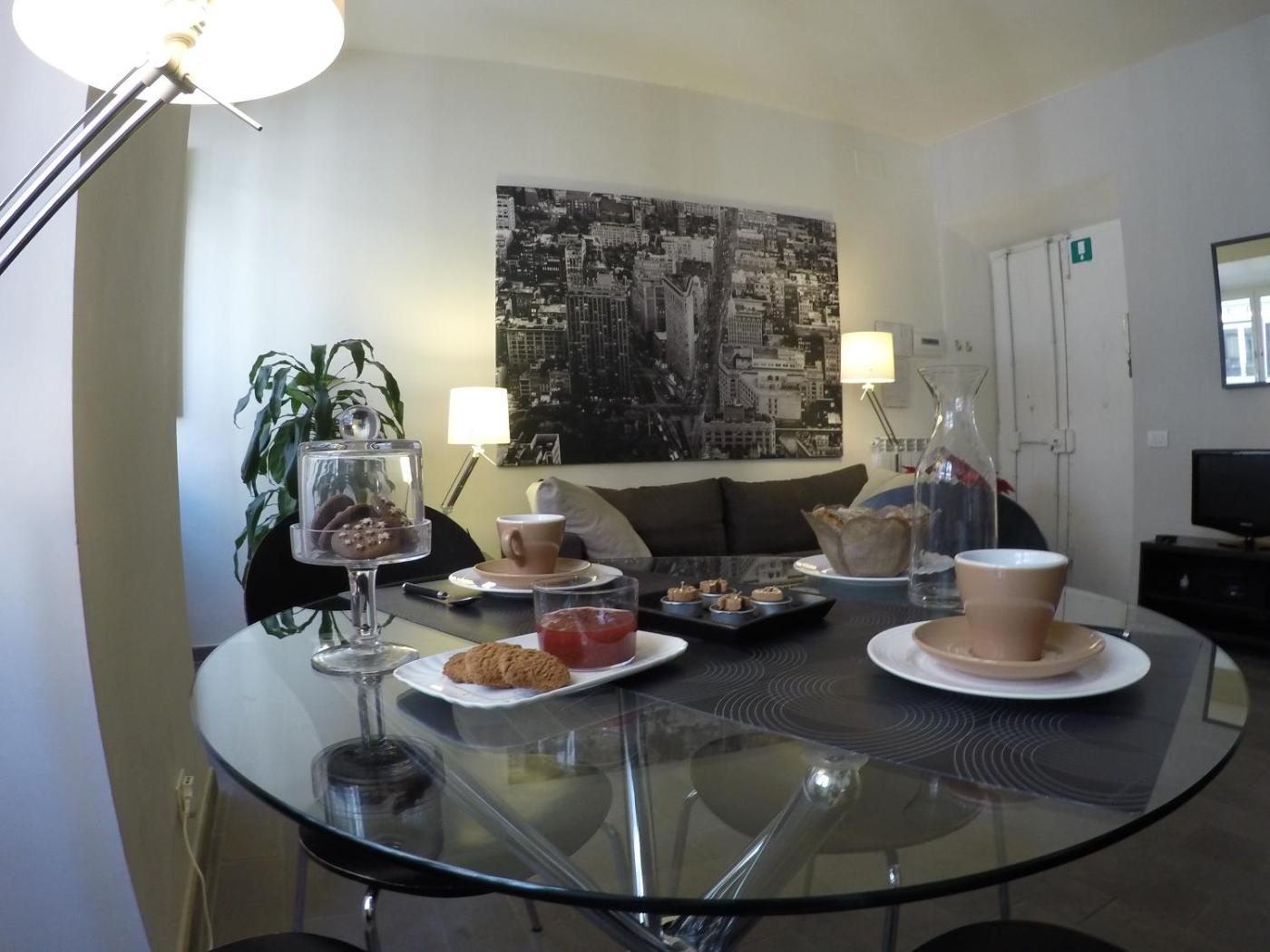 Appartamento. Appartamento con ingresso privato e aria condizionata composto da 1 soggiorno, 1 camera da letto indipendente e 1 bagno con doccia e bidè. La cucina è completa e comprende fornelli, frigorifero, utensili e microonde. In questo appartamento con vista città troverete anche comfort quali TV via cavo a schermo piatto, lavatrice eper la preparazione di tècaffè. Le pareti sono insonorizzate. Numero di letti disponibili: 2.
