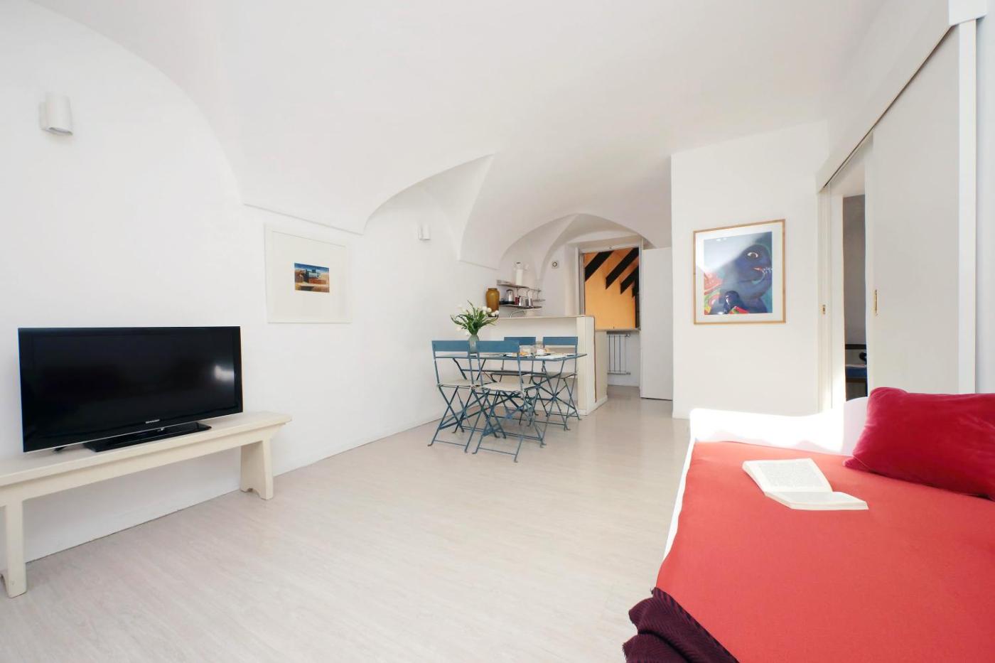 Questo appartamento con aria condizionata comprende 1 camera da letto, un soggiorno, una cucina con utensili, frigorifero e bollitore elettrico, e 1 bagno con bidet edi cortesia. Presso questo appartamento troverete asciugamani e lenzuola a disposizione.