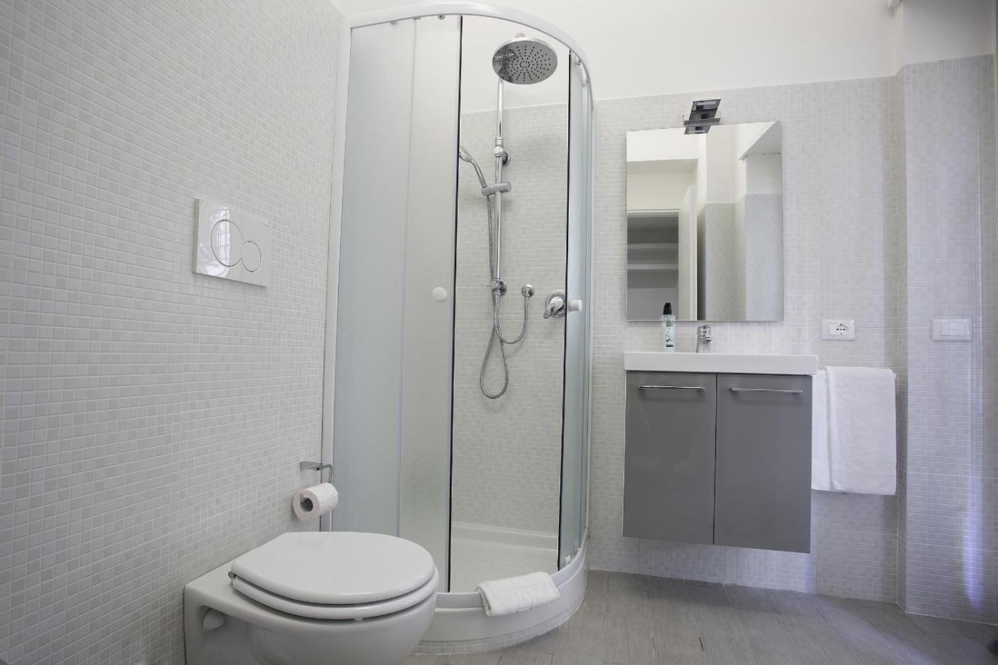 Camera Tripla con Bagno Privato. Camera tripla dotata di un bagno privato con doccia, bidet, asciugacapelli,di cortesia e accappatoi. Ă climatizzata e presenta un ingresso indipendente, un armadio, un pavimento piastrellato e una TV a schermo piatto con canali satellitari. Lâalloggio dispone di 2 letti.
