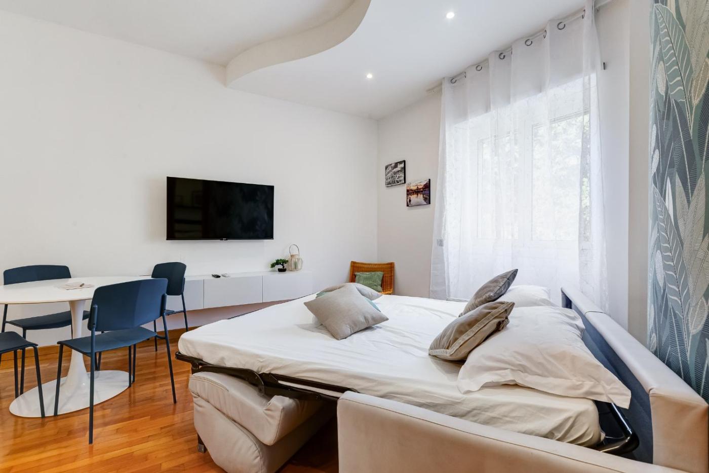 Appartamento con 1 Camera da Letto. This apartment comes with 1 living room, 1 separate bedroom and 1 bathroom with a shower and free toiletries. Meals can be prepared in the well-fitted kitchen, which features a stovetop, a refrigerator, kitchenware and an oven. This apartment is air-conditioned and has a seating area with a flat-screen TV, a washing machine, soundproof walls, a tea and coffee maker, as well as a dining area. The unit has 2 beds.