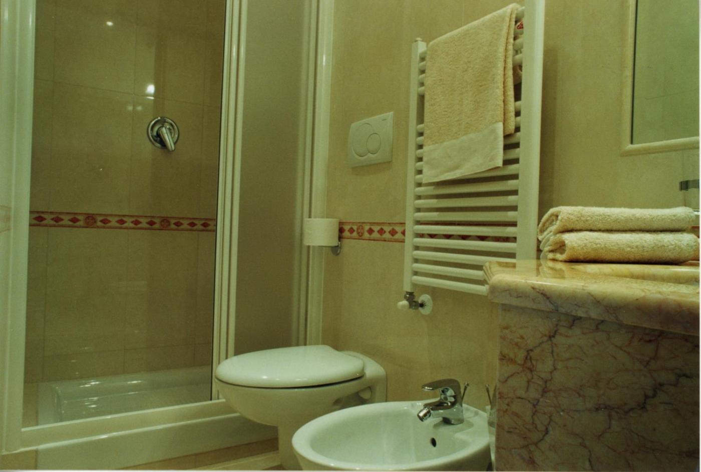Camera Tripla Comfort. Providing free toiletries, this triple room includes a private bathroom with a shower, a bidet and a hairdryer. This triple room is air-conditioned and features a flat-screen TV, a safe deposit box and an electric kettle.