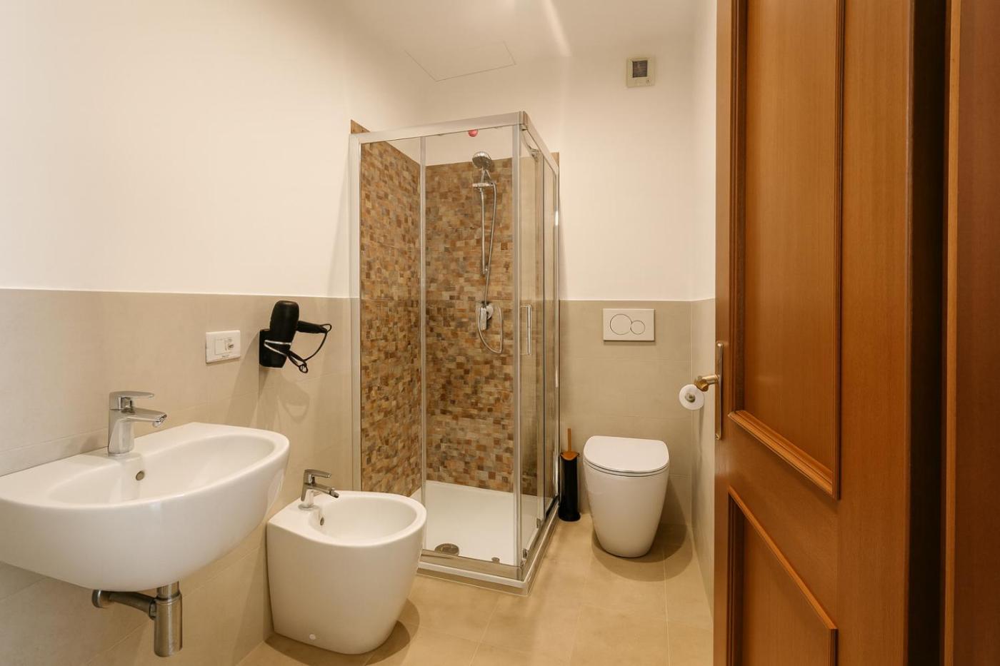 Questo appartamento comprende 2 camere da letto, una cucina con frigorifero e forno, una TV a schermo piatto, un’area salotto e 2 bagni con bidet. Presso questo appartamento troverete asciugamani e lenzuola a disposizione.