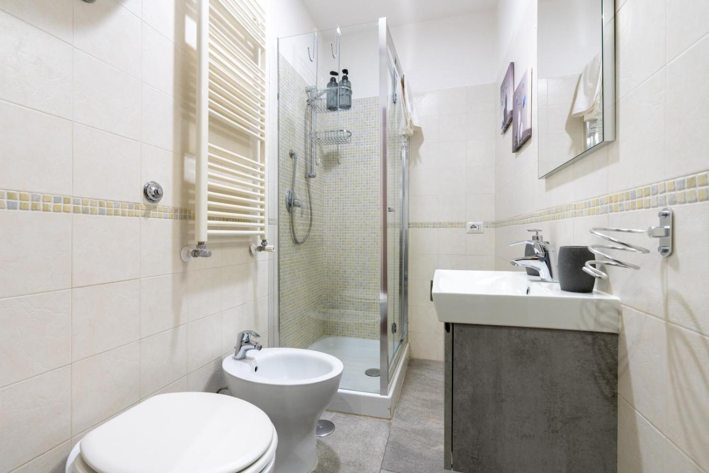 Appartamento con 1 Camera da Letto. The well-equipped kitchen features a stovetop, a refrigerator, a dishwasher and kitchenware. The air-conditioned apartment offers a flat-screen TV with streaming services, a washing machine, a tea and coffee maker, a seating area as well as city views. The unit offers 2 beds.