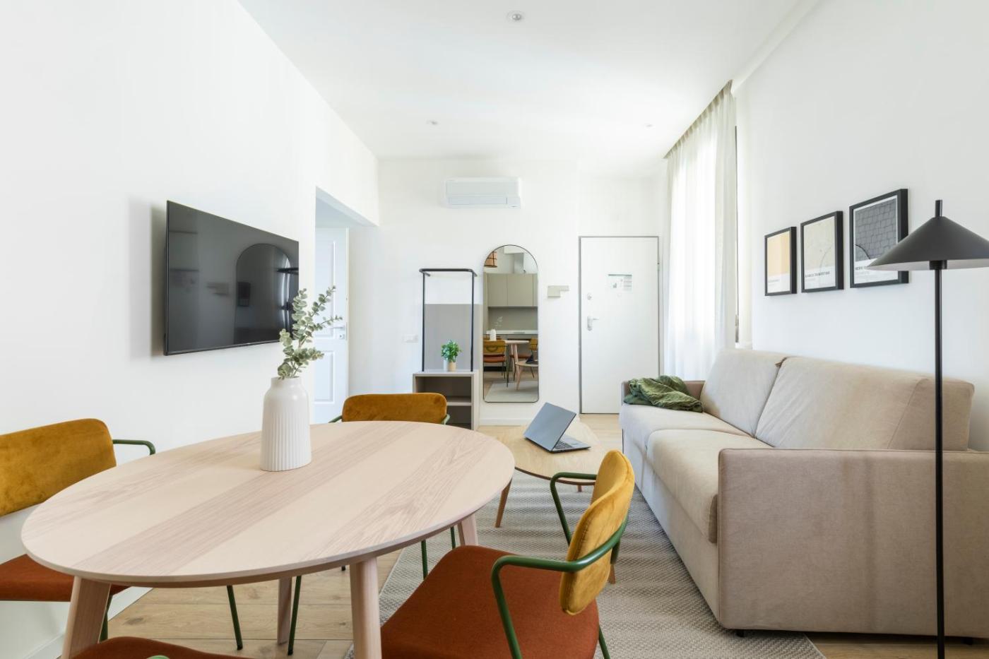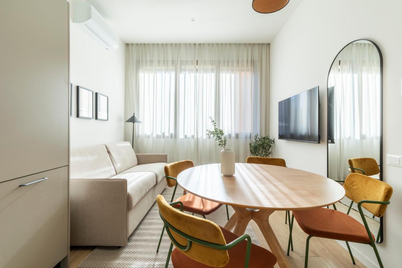 Appartamento con 1 Camera da Letto. Appartamento climatizzato con cucina, 1 camera da letto e 1 bagno. La cucina è attrezzata per cuocere e conservare gli alimenti. Include TV a schermo piatto. L’unità offre 2 letti. ;