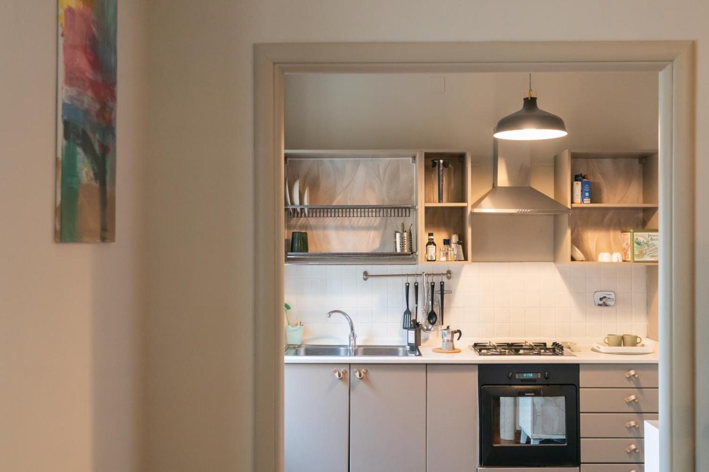 Appartamento con 1 Camera da Letto. Featuring a private entrance, this air-conditioned apartment comprises 1 living room, 1 separate bedroom and 1 bathroom with a shower and a bidet. Guests can make meals in the kitchen that comes with a stovetop, a refrigerator, kitchenware and an oven. The apartment features parquet floors, a seating area with a flat-screen TV, a washing machine, a tea and coffee maker as well as a quiet street view. The unit offers 2 beds.