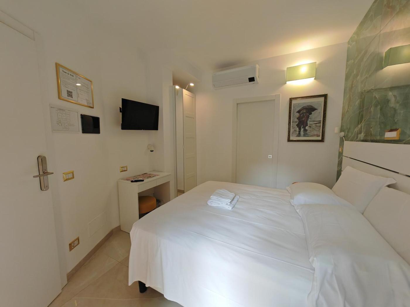 Camera Matrimoniale. Camera matrimoniale climatizzata con ingresso indipendente, balcone con vista sul cortile interno e bagno privato con doccia. L’alloggio dispone di 1 letto.