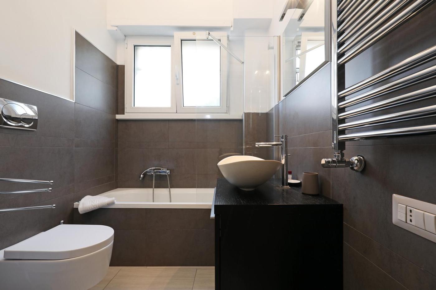 Appartamento con 2 Camere da Letto. This spacious apartment comes with 1 living room, 2 separate bedrooms and 2 bathrooms with a bath and free toiletries. Guests can make meals in the kitchenette that features a stovetop, a refrigerator, a dishwasher and kitchenware. This apartment is air-conditioned and has a seating area with a flat-screen TV, a washing machine, soundproof walls, a tea and coffee maker, as well as a dining area. The unit has 3 beds.