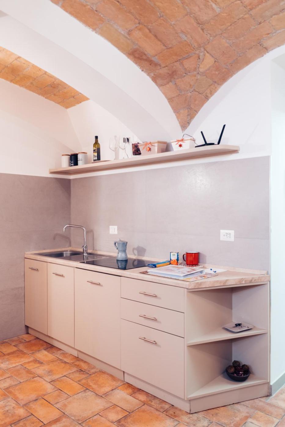 Appartamento - Seminterrato. Featuring high ceilings and brick archways, this stylish apartment includes a living area with a sofa bed and a kitchenette equipped with a dishwasher an espresso coffee machine. Also includes satellite TV, memory-foam mattress and free WiFi. This unit isin the basement.