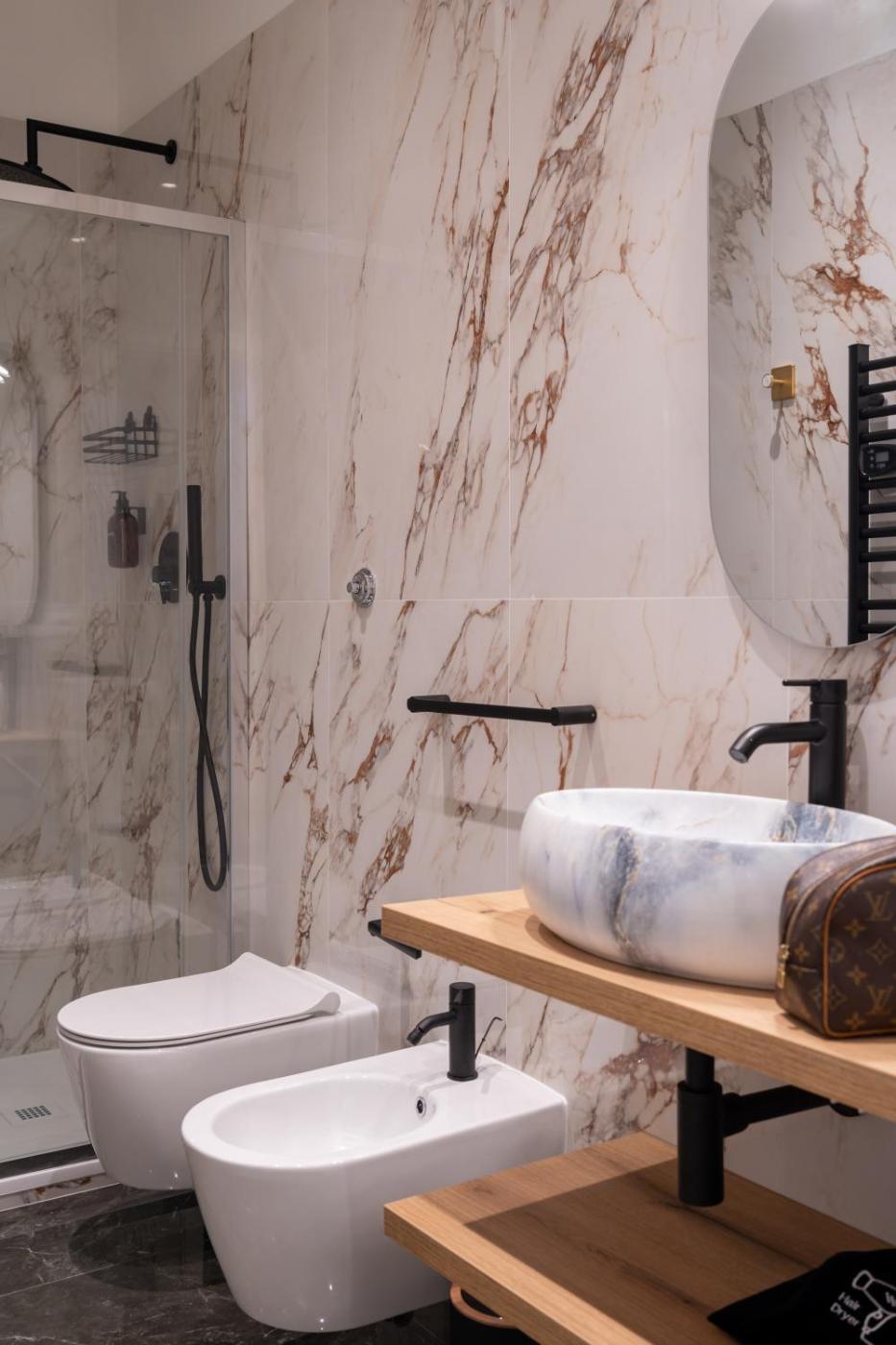 Camera Matrimoniale Deluxe. Offering free toiletries, this double room includes a private bathroom with a shower, a bidet and a hairdryer. The air-conditioned double room offers a flat-screen TV with streaming services, a private entrance, soundproof walls, a minibar as well as city views. ;