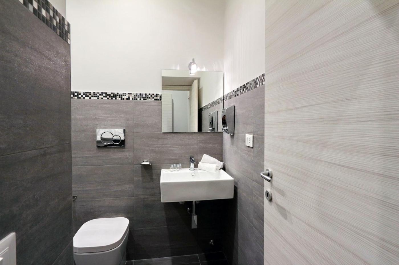 Camera Matrimoniale con Bagno Privato. Questa camera matrimoniale include un bagno privato condi cortesia, doccia, bidet e asciugacapelli. Climatizzata e insonorizzata, la sistemazione dispone di TV a schermo piatto,per la preparazione di tè e caffè, armadio e vista sul cortile interno. L’alloggio presenta 1 letto.