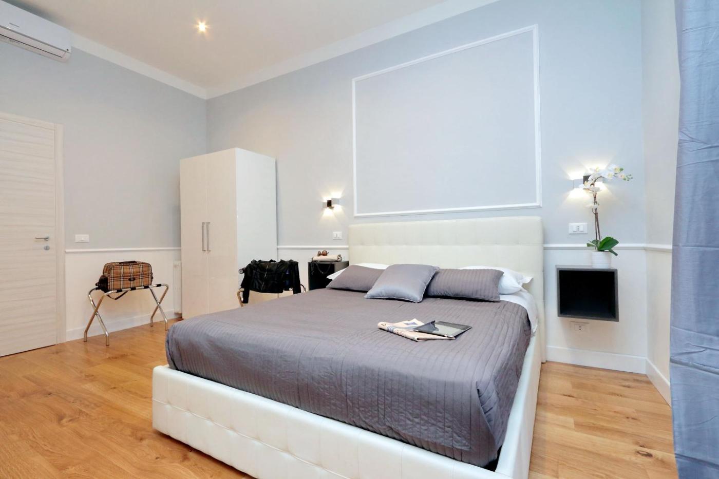 Camera Matrimoniale Deluxe con Bagno Privato. Camera matrimoniale dotata di bagno privato con doccia, bidet, asciugacapelli edi cortesia. Camera matrimoniale climatizzata con TV a schermo piatto, pareti insonorizzate,per la preparazione di tè e caffè, armadio e vista su una strada tranquilla. L’alloggio dispone di 1 letto. ;