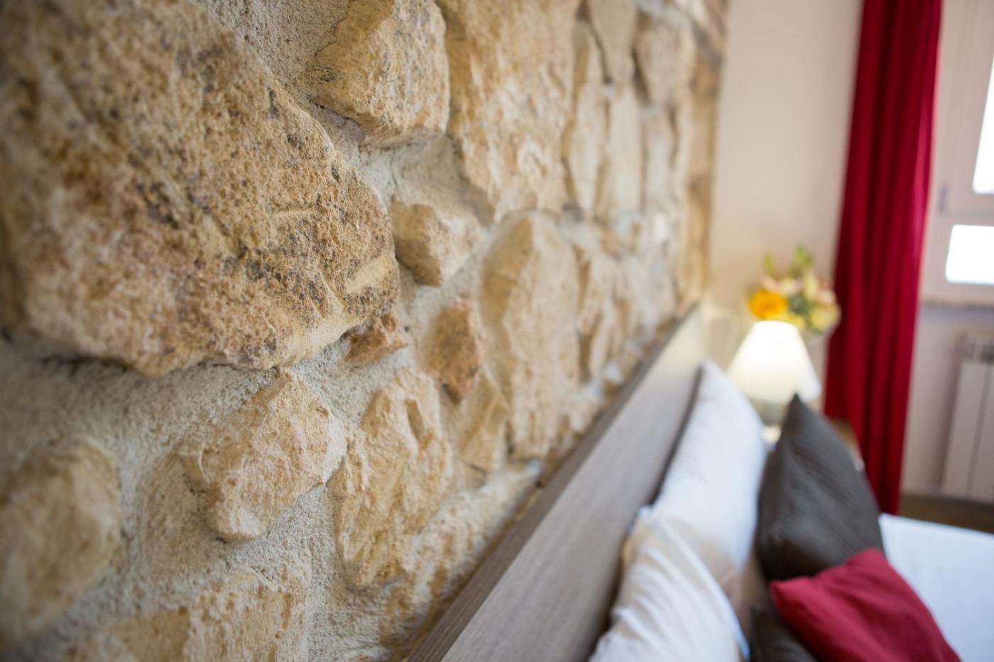 Camera Matrimoniale. Elegante camera colorata con pavimenti in parquet e pareti con pietra a vista. La sistemazione dispone di WiFi gratuito, TV a schermo piatto, minibar e bagno interno. ;