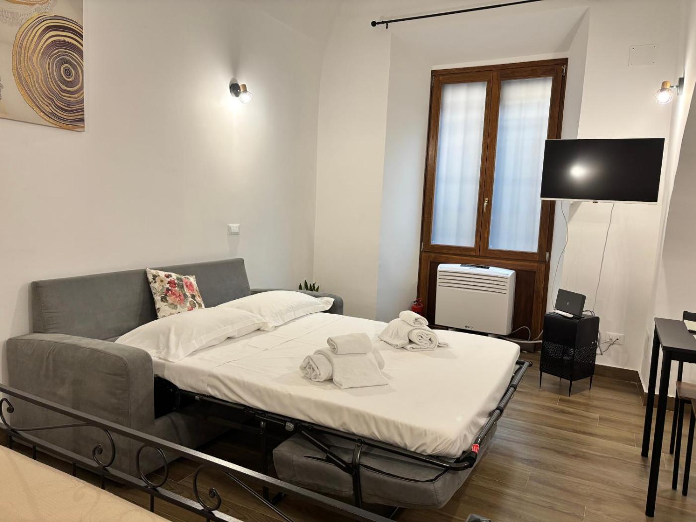 Appartamento con 1 Camera da Letto. Featuring a private entrance, this air-conditioned apartment comprises 1 living room, 1 separate bedroom and 1 bathroom with a walk-in shower and a bidet. In the kitchen, guests will find a stovetop, a refrigerator, kitchenware and an oven. The apartment provides a tea and coffee maker, a dining area, a sofa, a tiled floor, as well as a flat-screen TV with cable channels. The unit offers 2 beds.